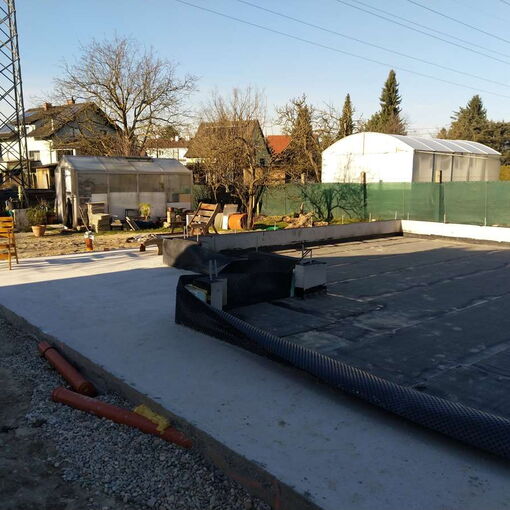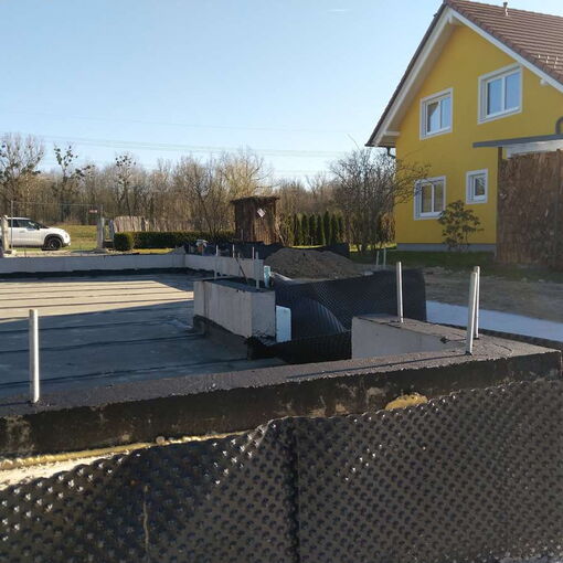 [Farbverbrauch: 3 Kübel Akazie (außen), 3+ Kübel weiß (innen) - wir sind fix und foxi, bekommen aber ein dickes Lob, weil wir so perfekt gestrichen haben. O-Ton: Das kommt selten vor, dass das jemand so schön macht ...]