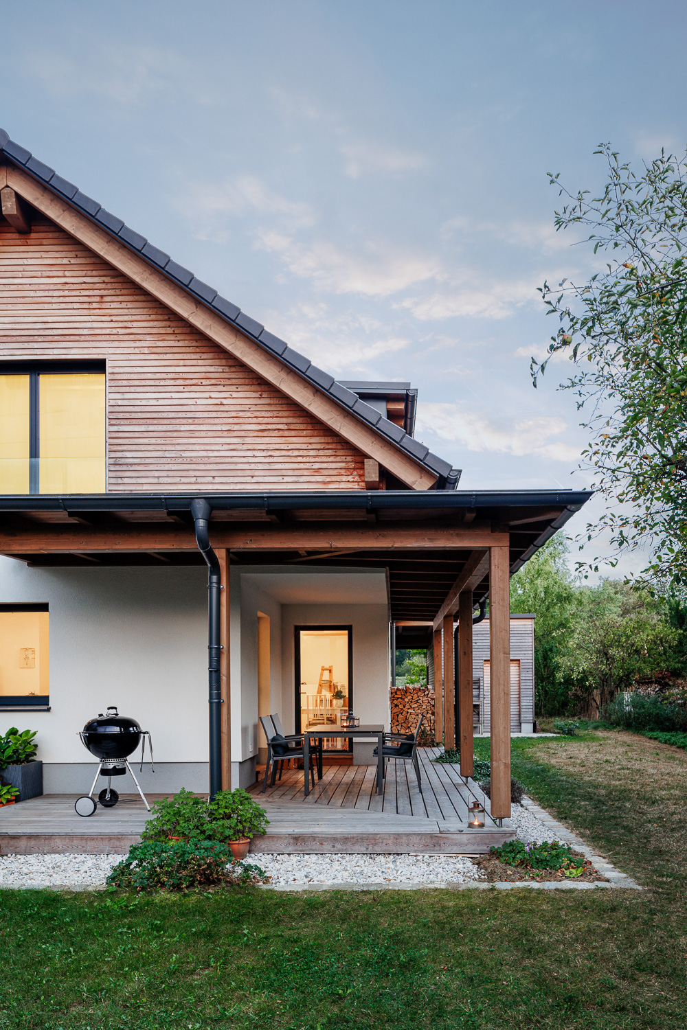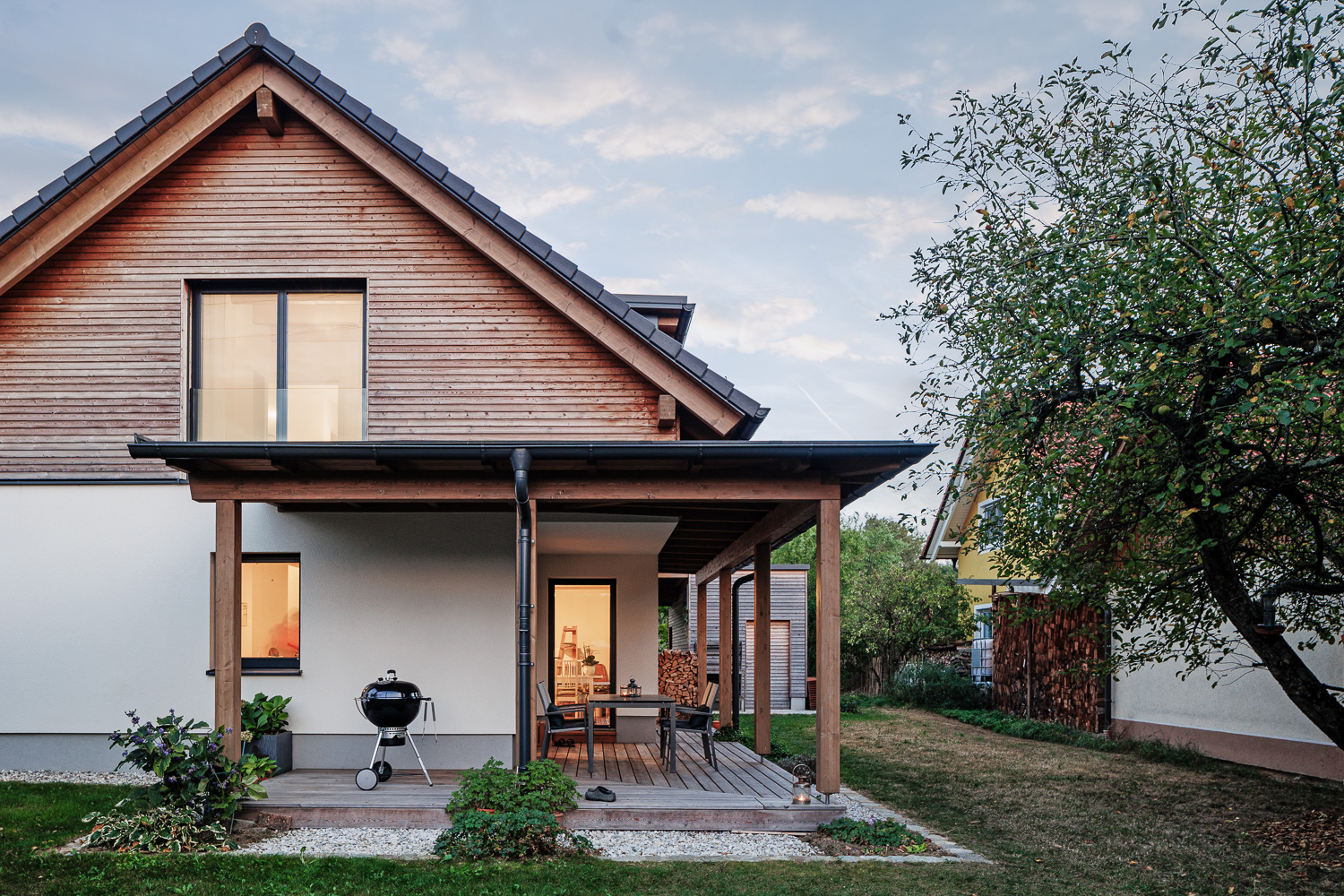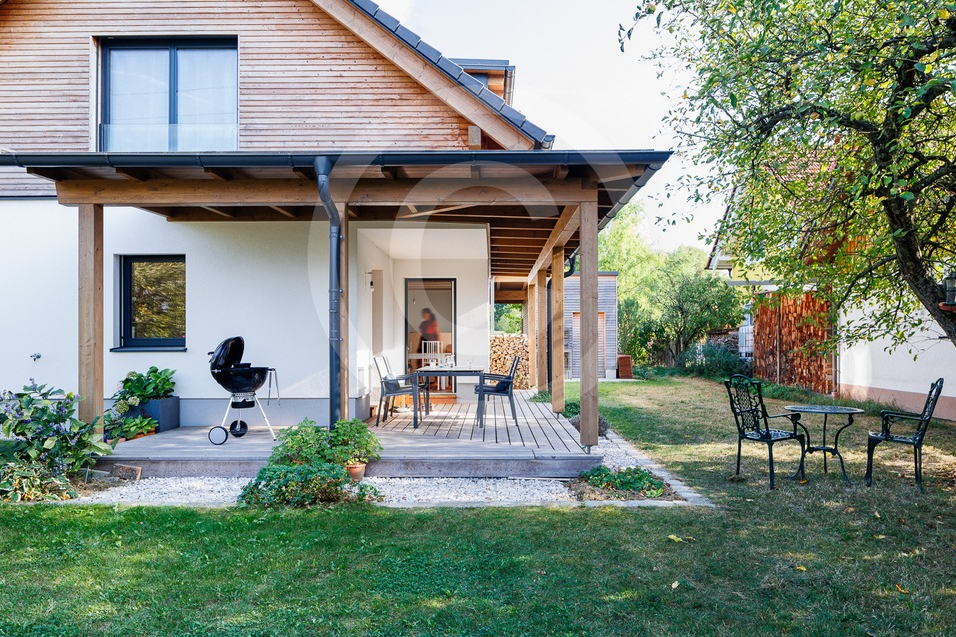 Ja, wir wissen, dass die angekündigte Grillparty immer noch nicht stattgefunden hat, aber es gibt jetzt zumindest ein paar professionelle Fotos. Der Garten schaut nach der sommerlichen Extremhitzewelle nicht recht gut aus, das Haus dafür umso besser (selbstverständlich ist es drinnen auch fast immer so zusammengeräumt ...).